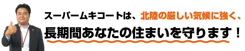 それに対して、スーパームキコートは、同じスーパーコートシリーズでも、フッ素を含んだスーパーフッソコートに比べて、約3倍の伸び率があります。この驚異の柔軟性によって、道路からの振動や、建材の伸縮から住まいの外観の美しさを守ってくれるのです!