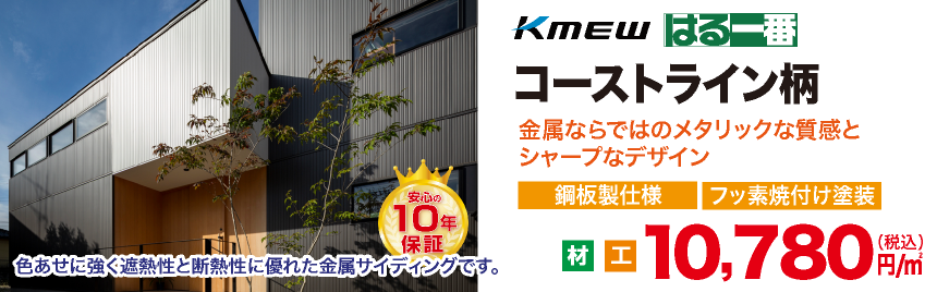 金属サイディングは、モルタル壁やコンクリート壁に比べて熱の伝えやすさは約 1/10 程度。